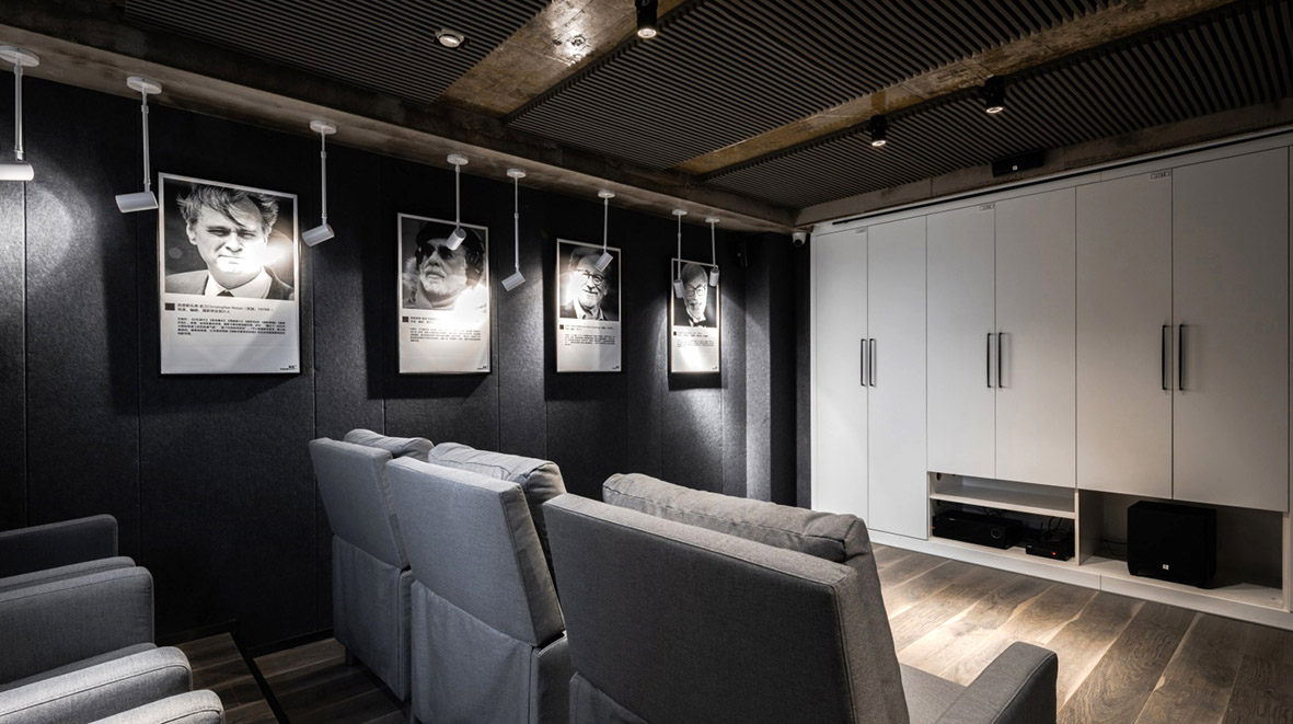 大廳的另一側(cè),是一個(gè)5.1聲道影院。它不僅是一個(gè)審片、觀影的場所,也是員工午休的地方。