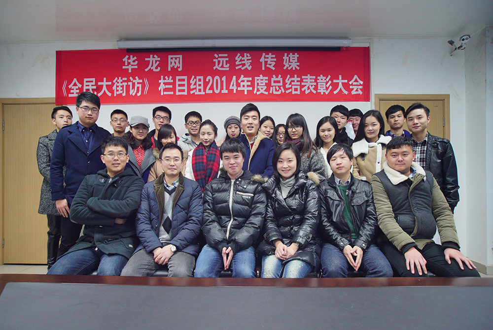 2014年1月8日,《全民大街訪》欄目組2014年度總結(jié)及表彰大會在本公司重慶工商大學(xué)制作中心會議室舉行,華龍網(wǎng)視聽中心副主任、《全民大街訪》監(jiān)制趙琪瑤,本公司傳媒事業(yè)部總監(jiān)、《全民大街訪》制片王世華,欄目組負責(zé)人梁唐輝,影視部負責(zé)人楊浩夫,平面部負責(zé)人張玨源以及欄目組全體記者編輯共計出席了會議。《全民大街訪》前編導(dǎo)、央視原員工趙晨應(yīng)邀出席會議。