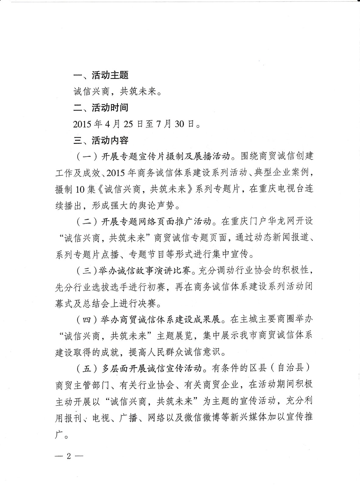 ??附:《重慶市商業委員會辦公室關于開展商務誠信主題宣傳活動的通知》(渝商委辦發[2015]34號文件)